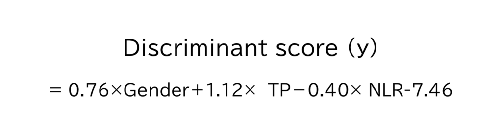The diagnostic equation for schizophrenia by discriminant analysis is shown below.